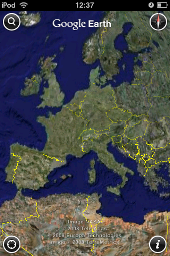 Google Earth per iPhone ti consente di orientarti in tutto il mondo: l’applicazione è in grado di rilevare la tua posizione corrente, centrando la mappa su questo punto quando premi l'icona di Posizione, e ti permette di fare delle ricerche per indirizzo, proprio come la versione desktop.